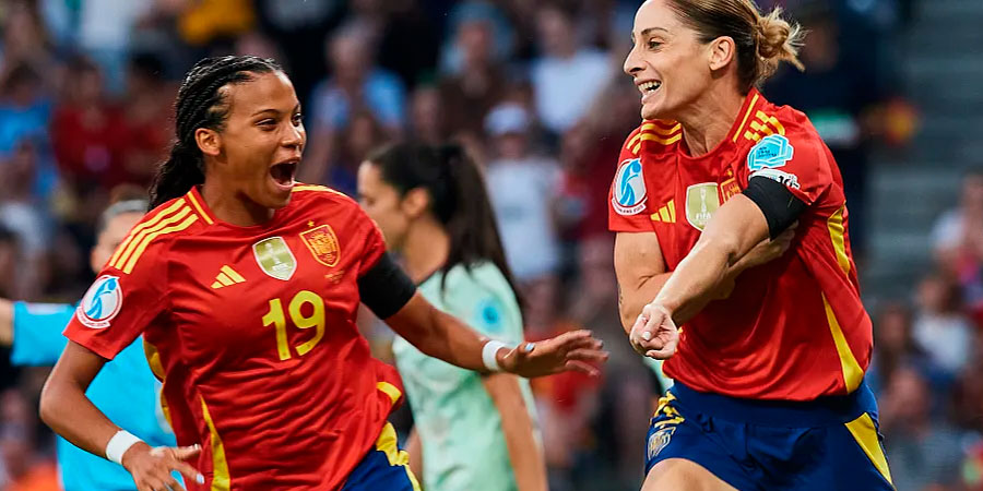 El partido comenzó con una Inglaterra fuerte y marcando lote , de hecho en el minuto tres estuvo a puntito de marcar tras un disparo mal despejado por Cata Coll, pero Lauren James no llegó el remate. Si bien , con el paso de los minutos, España fue implantando su juego y teniendo ocasiones. Esther González tuvo las más visibles , la primera en el minuto nueve, pero Hampton despejó el tiro y un minuto después su remate de cabeza salió rozando la portería.